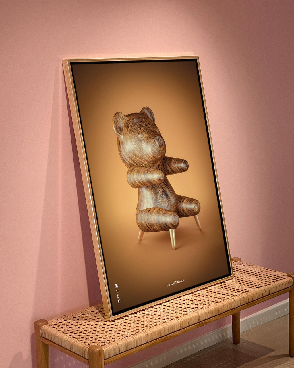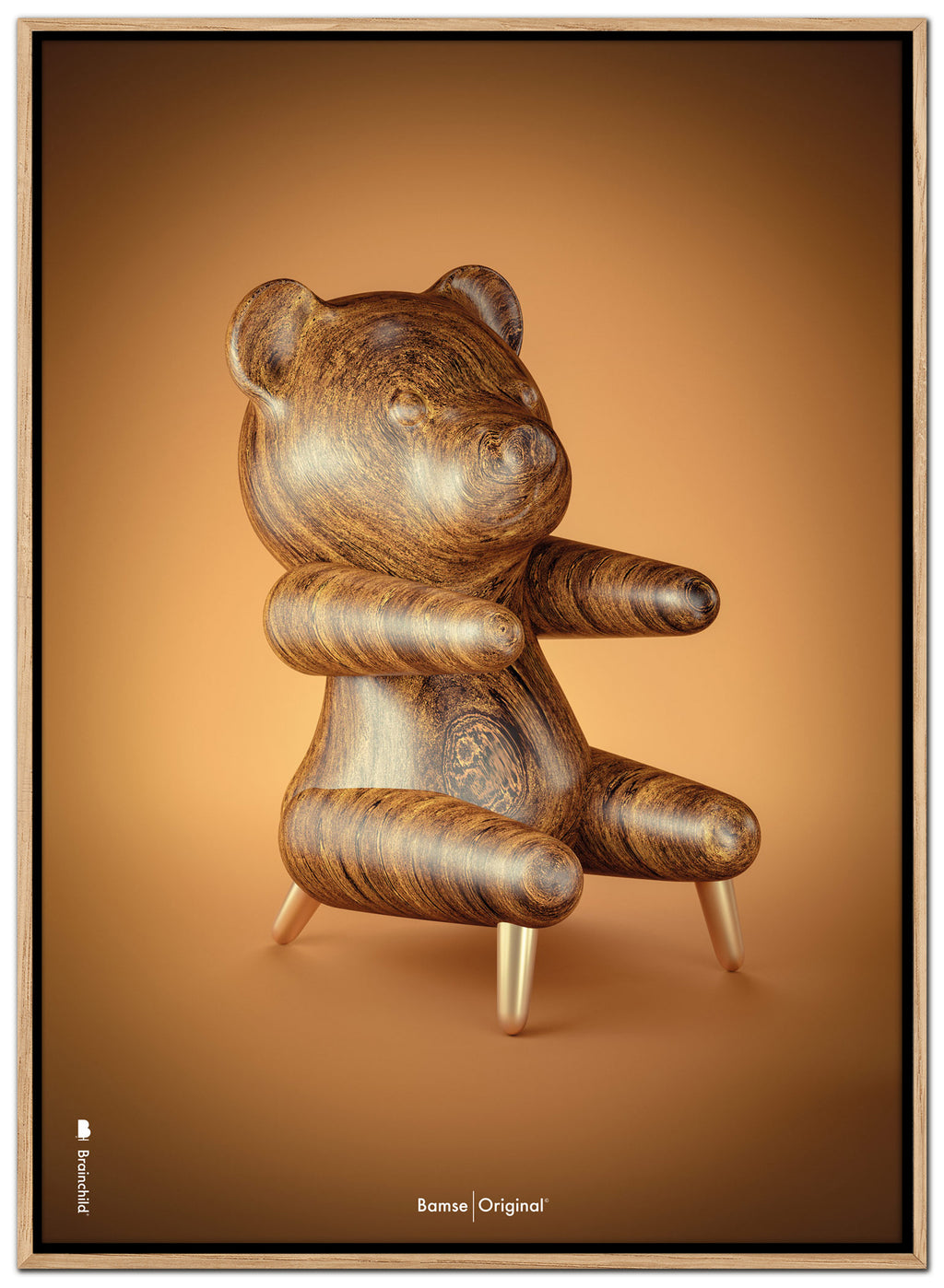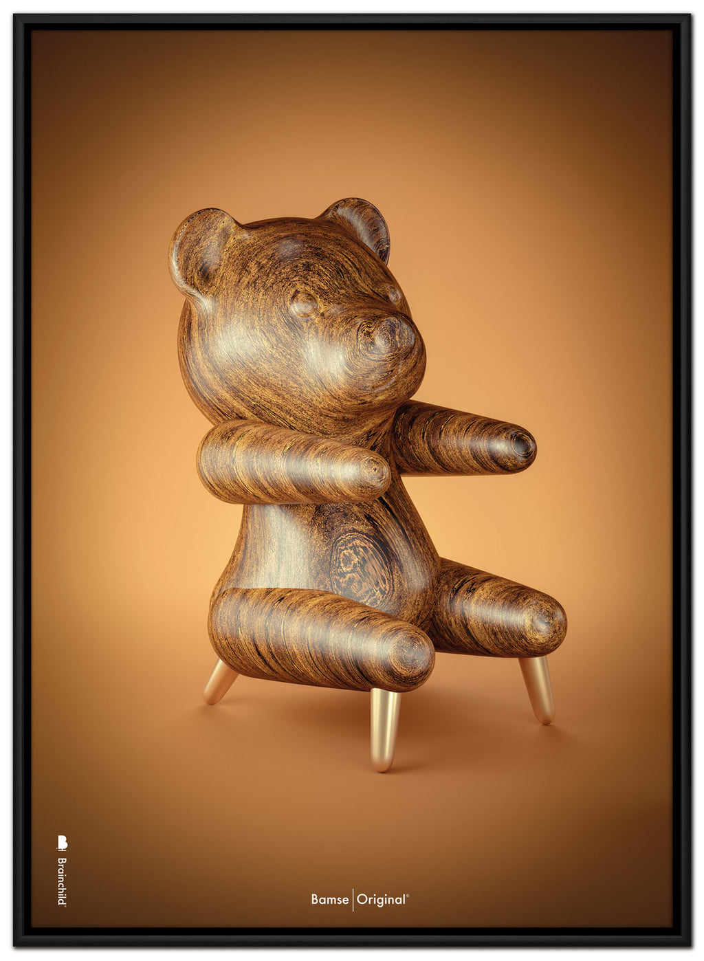 Brainchild canvastryck med motivet Bamse Figuren i klassisk stil på brun bakgrund. Motivet är en bokstavlig tolkning av Hans J. Wegners fåtölj, Bamsen, designad 1951. Canvasen är tryckt på bomullscanvas, vilket ger ett unikt och detaljerat uttryck. Priserna anges i SEK och inkluderar moms.
