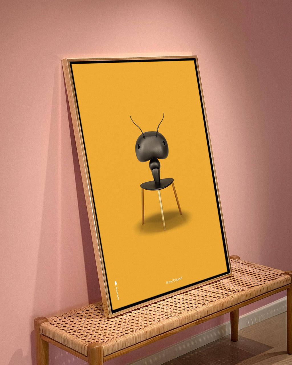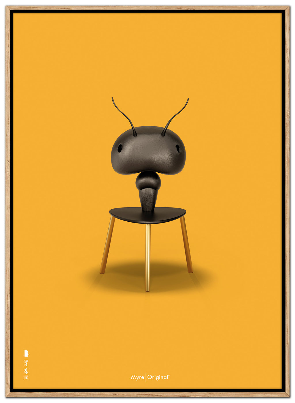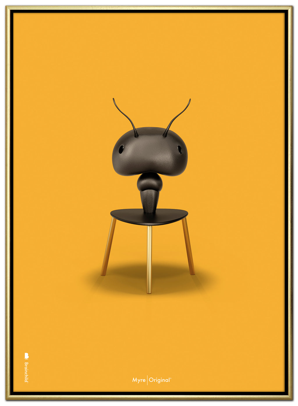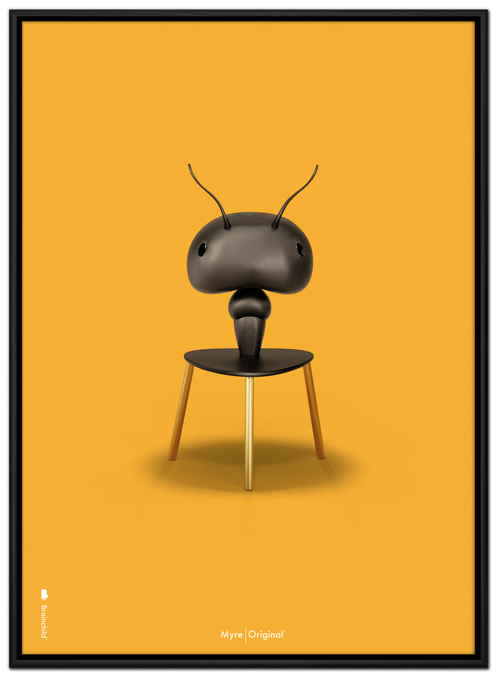 Brainchild canvastryck med motivet Myra i klassisk stil på en gul bakgrund. Motivet är en bokstavlig tolkning av Arne Jacobsens stol, Myran, designad 1952. Canvasen är tryckt på bomullscanvas, vilket ger ett unikt och detaljerat uttryck. Priserna anges i SEK och inkluderar moms.