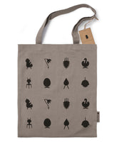 Canvasvävd bomullTote bags är tillverkade i en lättviktskvalitet av 100% canvasvävd bomull. De är tillräckligt starka för att bära det mesta och är lätta att vika ihop så att du alltid kan ha dem med dig i väskan. De har ett långt handtag som är perfekt för att bära över axeln. Påsarna är dekorerade med Brainchild Design-ikoner i ett symmetriskt mönster. De finns i färgerna ljusgrå, mörkgrå, blå och grön.
