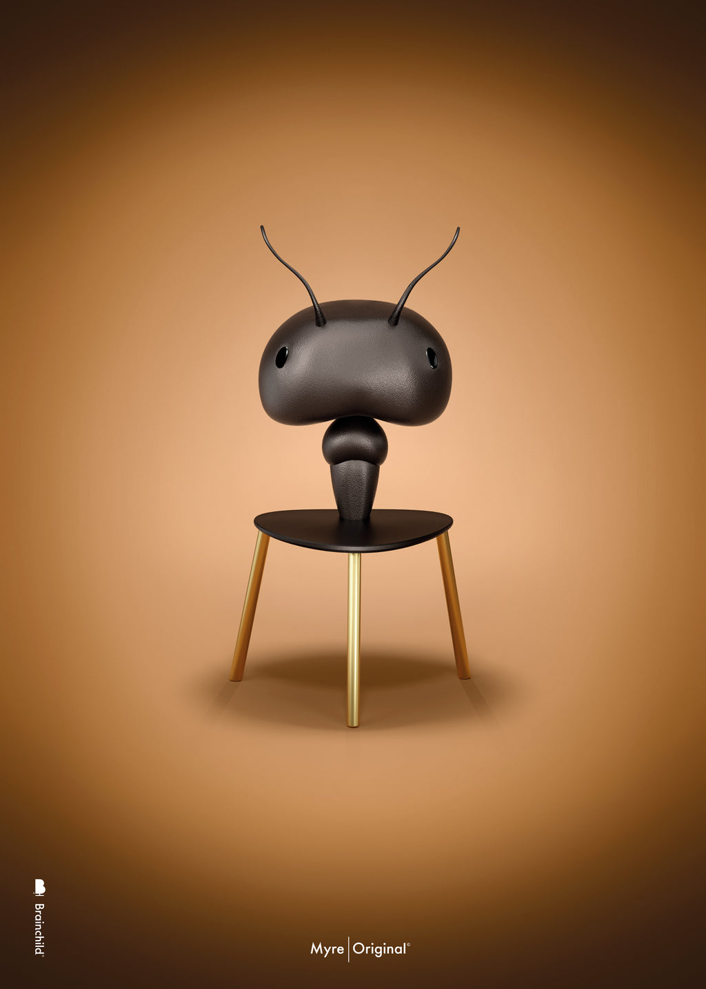 Ta in tidlös dansk design i ditt hem med Brainchilds poster som visar motivet Myran i en klassisk stil på en elegant brun bakgrund. Denna bokstavliga tolkning av Arne Jacobsens ikoniska stol från 1952, Myran, väcker skandinaviskt hantverk till liv. Postern har Myre Original-logotypen, där “Myre” är det danska ordet för myra, som en autentisk hyllning till dess danska designrötter. Producerad i Danmark och skickas över hela Sverige, erbjuder den premiumkvalitet och unik konstnärlighet för att skapa en atmosfär av tidlös elegans.