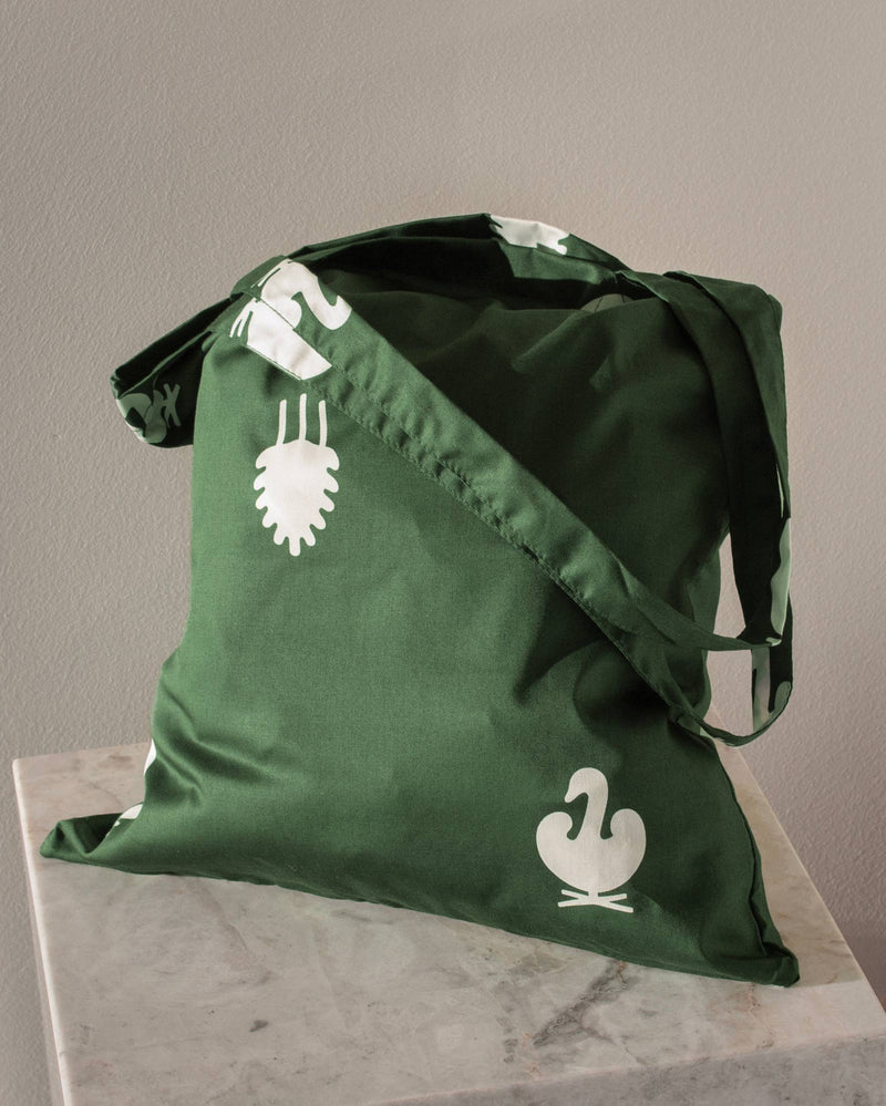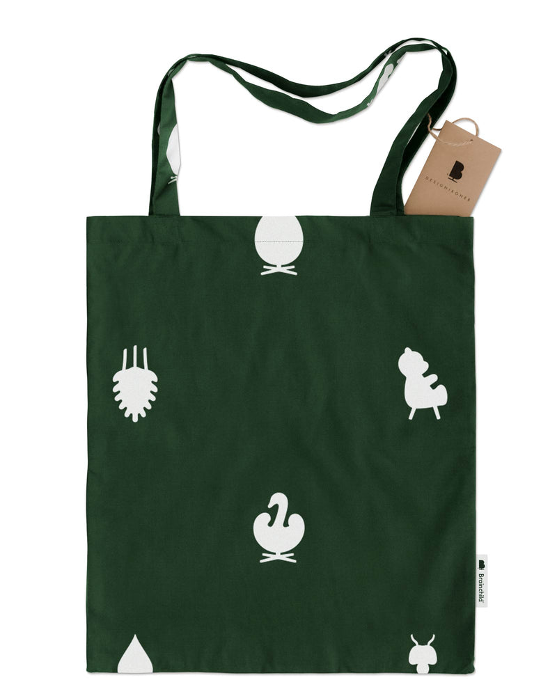 Brainchild tote bag är dekorerad med Brainchild Designikoner. Tote bag är gjorda av överskottstextil från tillverkningen av våra sängkläde och därfor är Design-ikonerna slumpmässigt placerade, vilket gör vår totebag helt unik. Tote bag år gjord i 100% satinvävd bomull, och framstar därmed i en mjuk och lätt kvaliet. Den år lätt att fälla ihop och stoppa i fickan, ilket gör den idealisk för vardagsbruk. Den har ett långt handtag så att den lätt kan bäras över axeln.